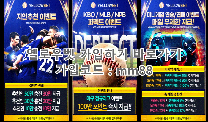 옐로우벳에서 현존 최고 배당, 업계 최다 이벤트를 경험을 하실 수 있습니다.